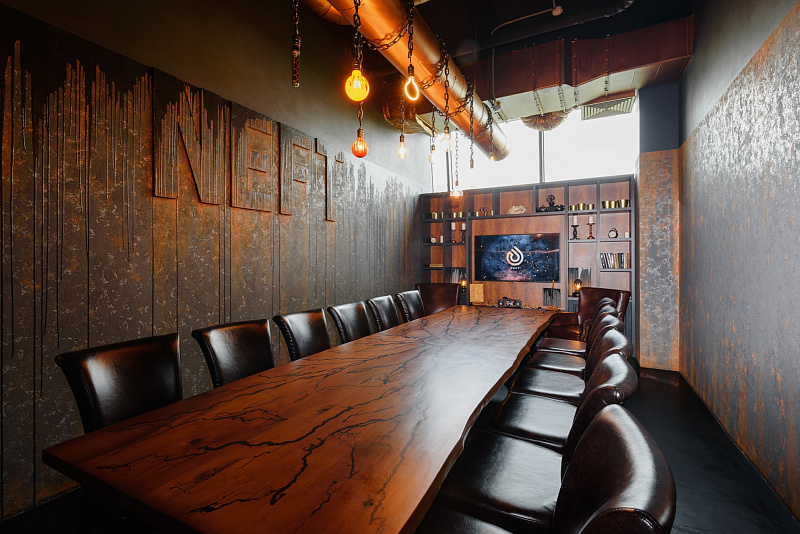 Зал оборудован креслами ортопедической формы из кожи, что позволяет чувствовать себя комфортно, но при этом не терять концентрацию на длительных мероприятиях. Большой плазменный телевизор отлично подходит для демонстрации различной информации и презентаций.